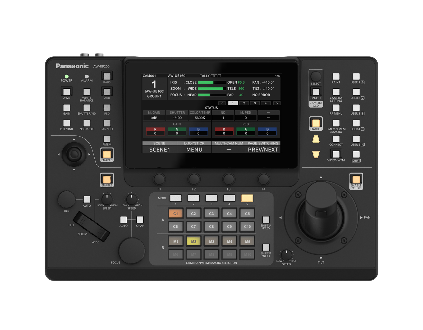 Osaka, Japan, September 3, 2025 – Panasonic Entertainment & Communication announced today its advanced new remote camera controller (AW-RP200GJ) offering enhanced usability for large-scale, multi-camera productions. Scheduled for release in Q1 CY2026,1 the controller builds on the highly regarded operability of its predecessor (AW-RP150GJ), while introducing new features including Panasonic’s first-ever macro functionality, dual joysticks and features for enhanced multi-camera shooting. The AW-RP200GJ is engineered to meet the growing demand for more versatile and sophisticated shooting techniques, such as robotic arm integration and advanced multi-camera setups, to elevate video content value. The controller initially will be exhibited at International Broadcasting Convention (IBC) 2025 in Amsterdam from September 12–15.