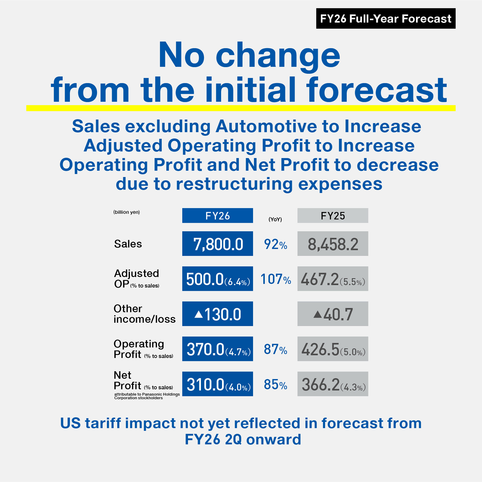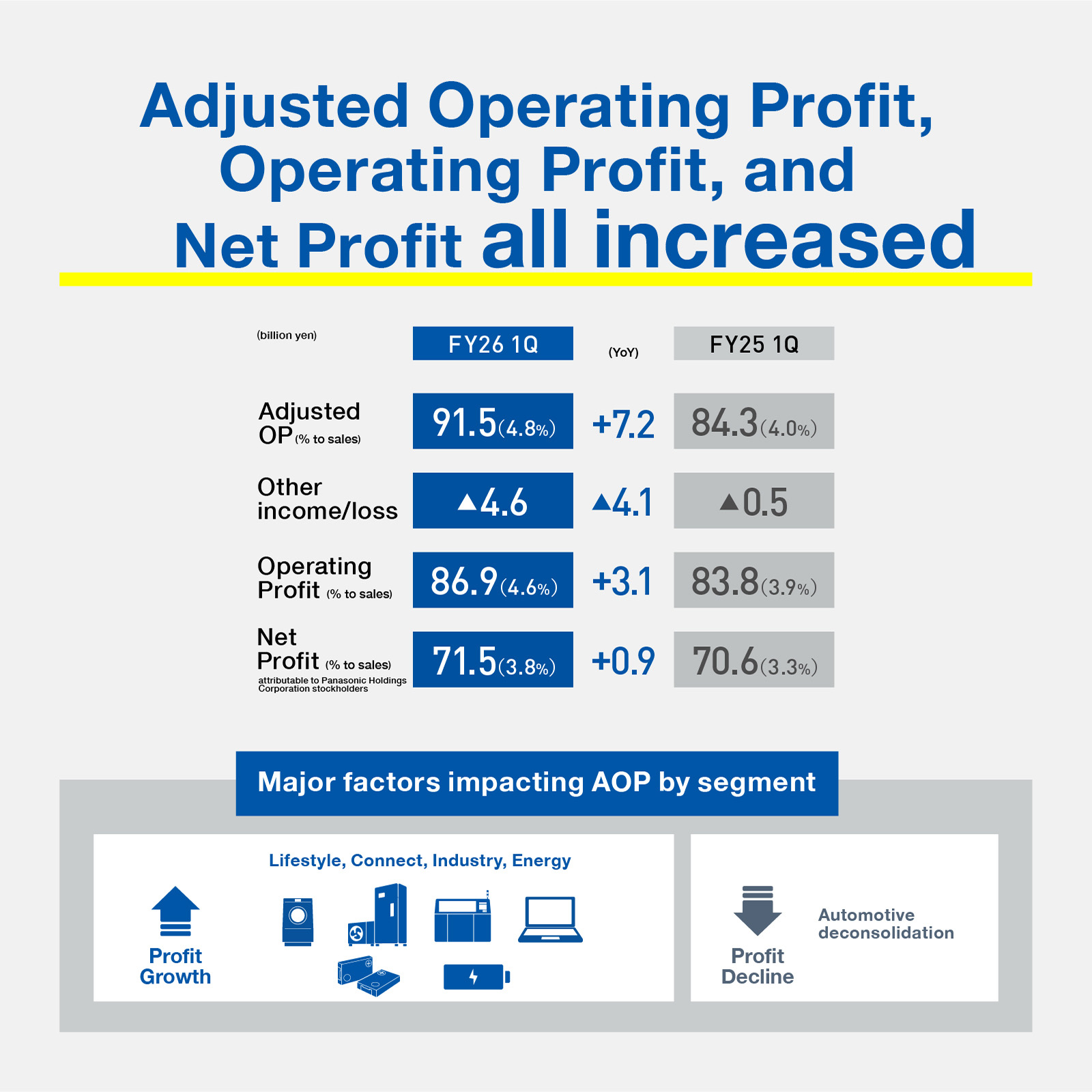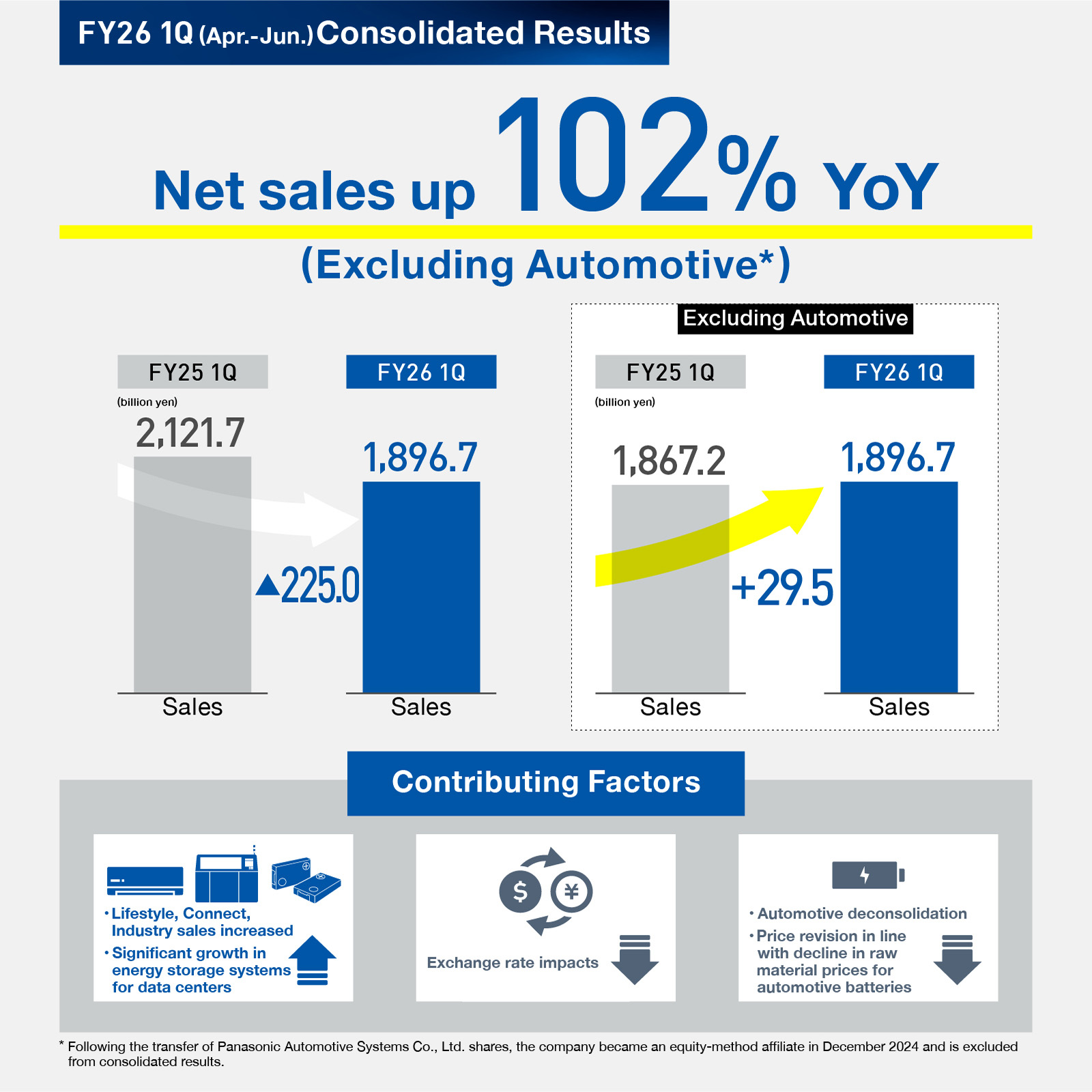 Panasonic Group announced its financial results for the first quarter of FY2026 on July 30. This fact sheet provides an overview of the results in an easy-to-understand infographic format. For more detailed information, please refer to the full financial results and presentation.