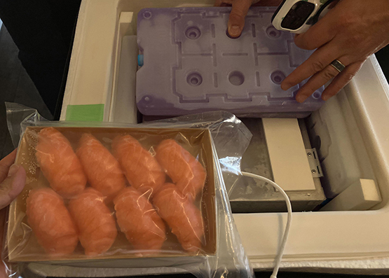 今回の検証は、2025年8月29日に日本を出発した冷凍寿司を対象に行いました。9月9日に米国現地で受け取るまでの約10日間、輸送した5つの「VIXELL」ボックスすべてがマイナス22℃以下を維持していたことを、同梱した温度ロガーデータにより確認。この結果、空輸においても冷凍寿司の品質維持に十分な温度管理が可能なことが証明されました。