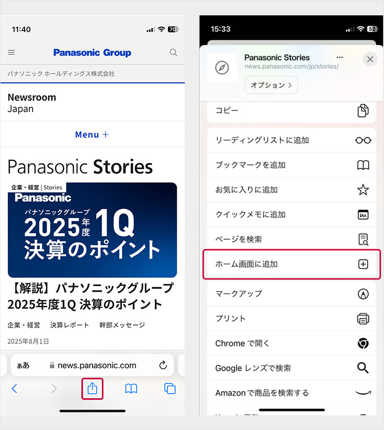 (ブラウザ下部のアクションボタンからホーム画面に追加)