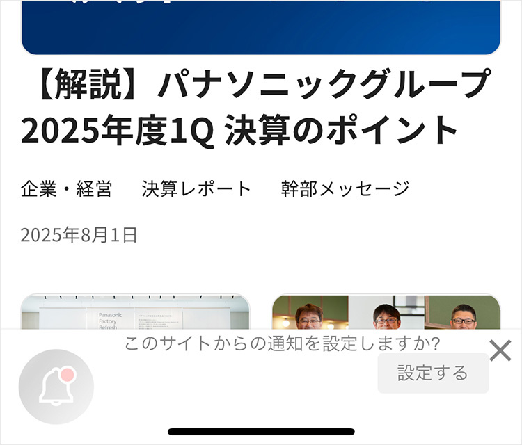 ブラウザの設定で通知をブロックされている方は、ページ下部に表示されるダイアログの「設定する」をタップし、手順に従い設定を変更してください。