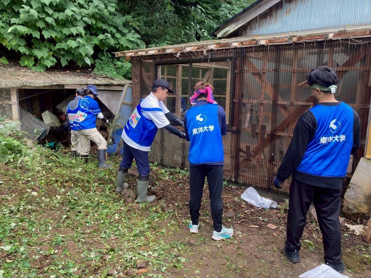 当日は同じく支援活動に来ていた東洋大学の学生と一緒に活動しました。