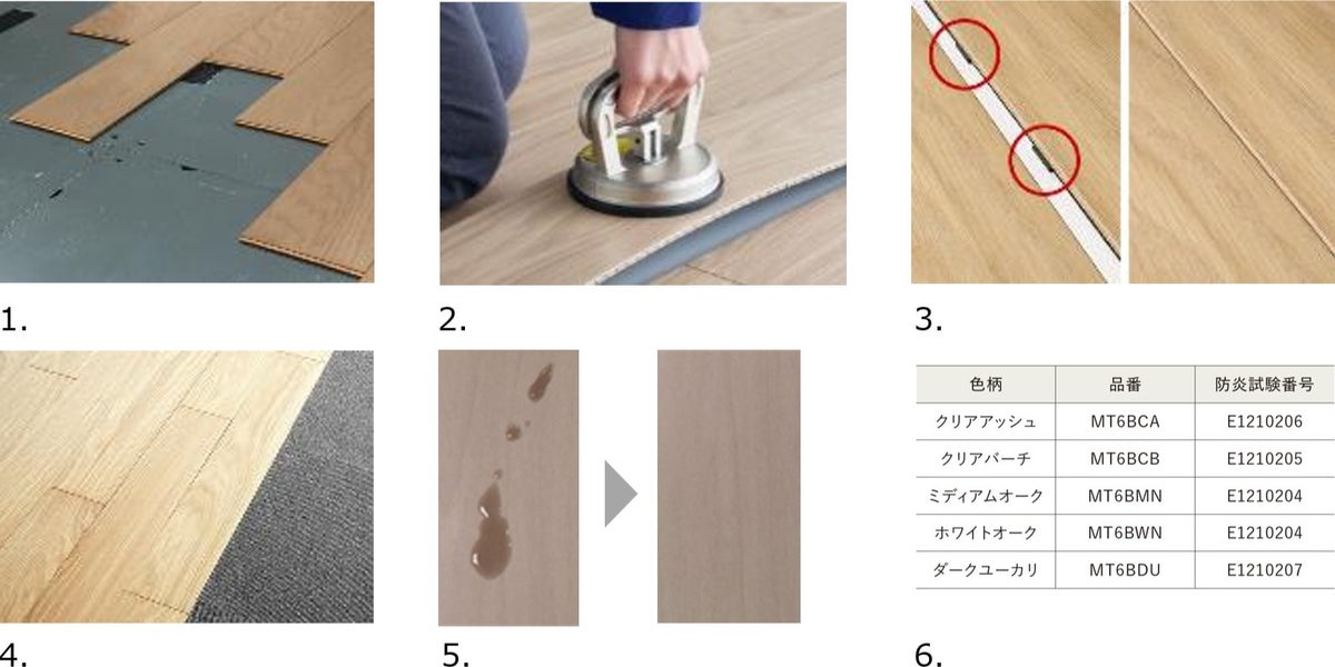 オフィス空間に求められる6つの性能を持ちあわせた床材です。